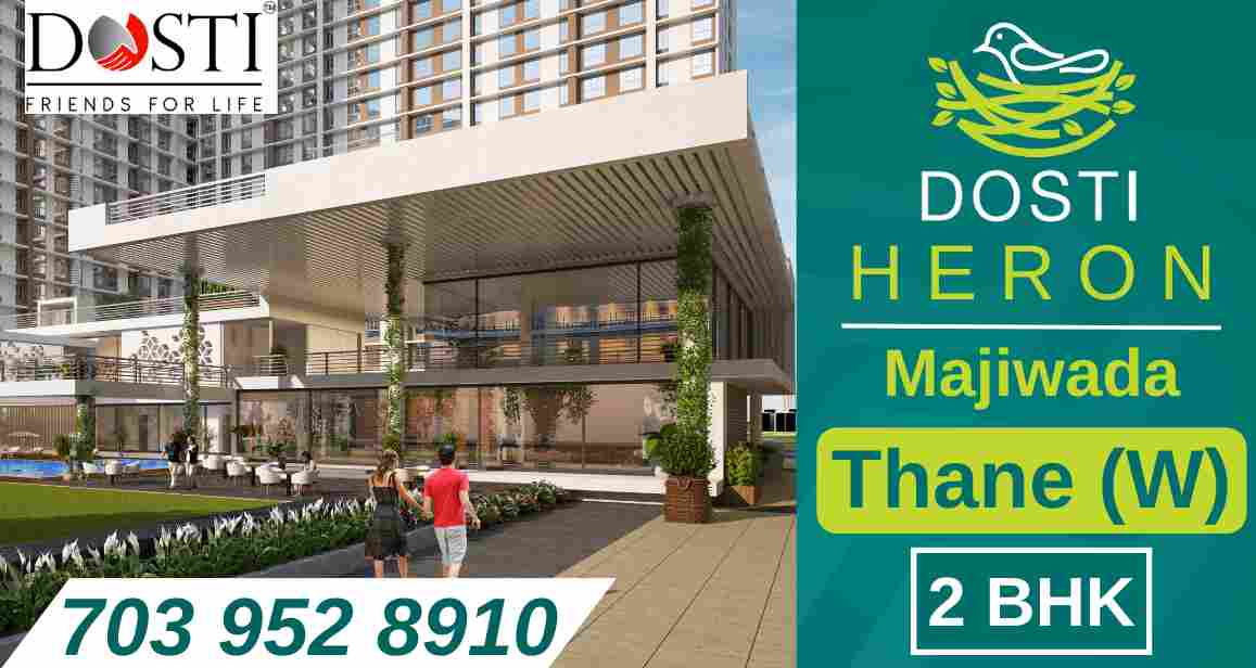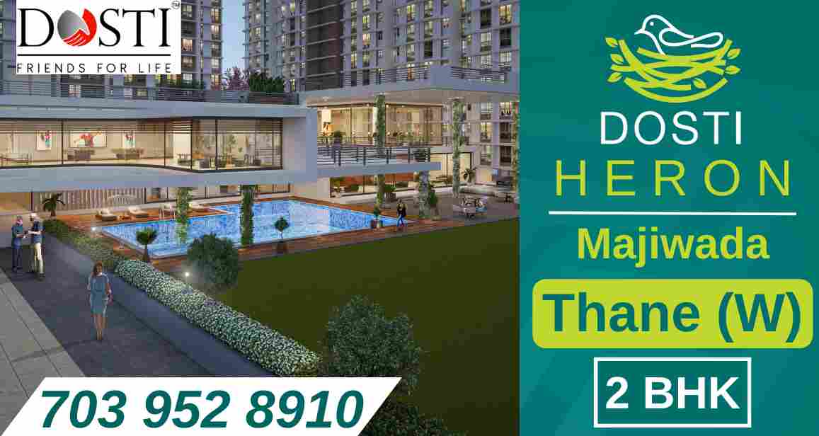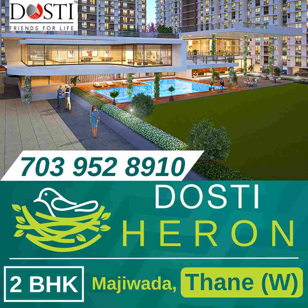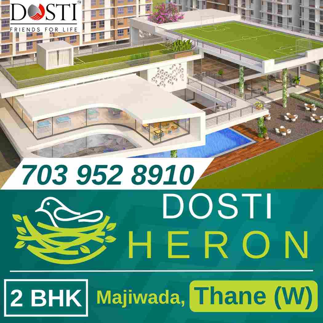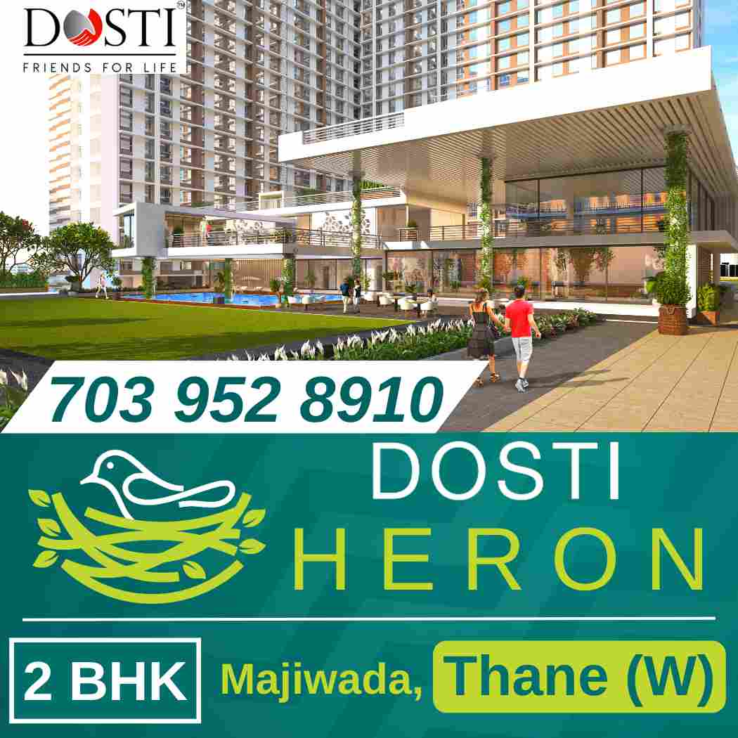 Dosti Heron Balkum is a Project by Dosti Realty situated in the most premium location of Thane West, at Balkum offering 2 BHK Flats with the availability of Jodi Apartments. Also get Floor Plan, Price Sheet, RERA ID, Reviews, Possession Timeline, Construction Status, Location Advantages, Address, Amenities & Specifications. After the Successful Launch of Dosti Nest – Dove & Merlin, Dosti Tulip, Dosti Pine, Dosti Oak, Dosti Cedar in Dosti West County Project. Dosti Heron Thane West is an Exclusive Tower of 30 Storey. Dosti Thane Property Features Amenities Outdoor Amenities – Swimming pool, Pool Deck Area, Kids Pool Area, Jogging Path, Outdoor Gym, Kids Play Area, Amphitheatre, Multipurpose Lawns, Resting Plaza, Yoga Deck, Multipurpose Sports Court on Podium, Multipurpose Sports Court Above Clubhouse, Nature Trial, Badminton Court, Box Cricket, Clubhouse Amenities – Multipurpose Hall, Gymnasium, Zumba Room, Library, Conference Room, Table Tennis / Snooker Room, Carrom & Chess Room. Dosti Heron Thane Project has Excellent Connectivity Upcoming Balkum metro station - 1 min, Kolshet Road - 5 Min, Wagle Estate - 18 Min, Thane Station - 20 Min, EDUCATIONAL INSTITUTES - CP Goenka International School - 3 Mins, Nett Paramedical College - 9 Mins, St. Xaviers English High School & Jr. College - 10 Mins, Rustomjee Cambridge School - 10 Mins, Lodha World School - 12 Mins, Vasant Vihar School - 13 Mins, TMC Law Colleges - 14 Mins, Orchids International School - 15 Mins, Universal High School - 15 Mins, Rainbow International School – 15 Mins, Smt. S Singhania High School – 15 Mins, Vidya Prasarak Mandal‘s Polytechnic 18 Mins, Hiranandani Foundation School - 18 Mins, Billabong High International School - 20 Mins, PUBLIC PARKS - Under Construction Grand Central Park – 1 Min, Jogger’s Park – 14 Mins, Ovalekar Wadi Butterfly Garden – 20 Mins, Nature Information Centre, Manpada – 20 Mins, MULTI-SPECIALITY HOSPITALS – Jupiter Hospital – 8 Mins, Bethany Hospital – 10 Mins, Hiranandani Hospital – 15 Mins, Horizon’s Hospital –15 Mins, Life Care Hospital – 15 Mins, Lake & Waterfronts – Rewale – 5 Mins, Makhmali – 15 Mins, Upvan – 15 Mins, Masunda – 18 Mins, Amusement & Water Parks – Tikuji–ni–Wadi – 12 Mins, Suraj Water Park – 15 Mins, Fine Dining Restaurants – Clove Bar & Kitchen – 7 Mins, Mainland China – 8 Mins, Barbeque Nation – 10 Mins, China Bistro – 10 Mins, Oriental Spice – 10 Mins, The Yellow Chilli – 10 Mins, Urban Tadka – 12 Mins, Fusion Dhaba – 20 Mins, Malls & HyperMarkets – Lake City Mall – 2 Mins, Big Bazaar – 3 Mins, High Street Mall – 3 Mins, D Mart – 8 Mins, Star Bazaar – 10 Mins, R Mall – 10 Mins, Viviana Mall – 10 Mins, Hypercity – 15 Mins, Korum Mall – 15 Mins, The Walk – 15 Mins, MULTIPLEXES & THEATRES - Kala Bhavan – 2 Mins, Cinema Star – 2 Mins, Cinemax – 7 Mins, Cinepolis – 10 Mins, Dr. Kashinath Ghanekar Auditorium – 15 Mins, Gadkari Rangayatan – 20 Mins.